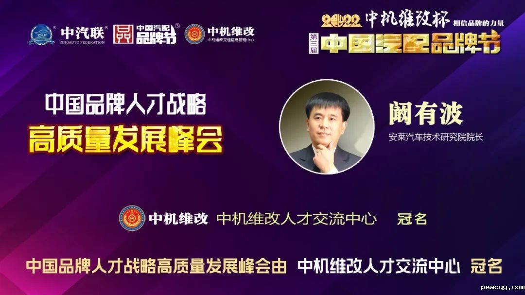 安莱汽车技术研究院院长阚有波 出席2022中国品牌人才战略高质量发展峰会并做精彩分享。阚院长是全国汽车维修行业知名专家,先后毕业于北京市交通运输学院和北京工业大学;自1998年开始,分别赴日本、韩国、德国和法国进修学习,赴日本丰田4S店学习经营管理。现担任清华大学基础工业训练中心客座教授,长白山技能名师,吉林交通学院特聘讲师,中国汽车诊断师大赛总策划、总裁判长,安莱(北京)汽车技术研究院院长、总工程师,安莱路泰汽车科技有限公司董事长。他长期在维修一线工作,写下了近10万字的修理技术日记;发表了大量各种汽车技术文章。之后又参与和从事企业的生产管理、业务管理、客户管理、技术管理工作。他从一个普通职业院校毕业生,到走进清华大学进行汽车诊断讲座;从一个技能大赛冠军到创办国内第一个汽车诊断师大赛;从一个普通车间技术人员,到走进创办国内第一家专门从事汽车售后服务研究的研究员;从一个普通技术创新的实现,到汽车服务一个独立系统的模块开发,阚有波已成为中国汽车维修行业的领军人物。