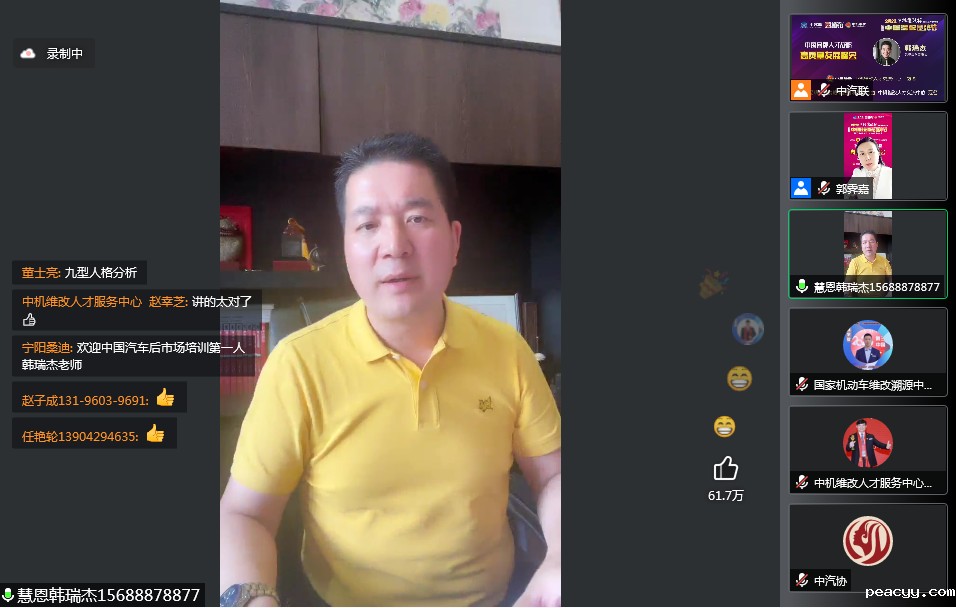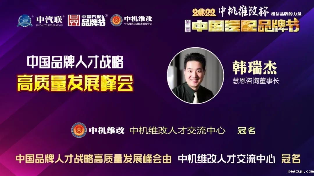 慧恩咨询董事长韩瑞杰 出席2022中国品牌人才战略高质量发展峰会并做精彩分享。韩老师从事培训教育事业十七年,从事汽车服务行业十五年时间,亲自走访上千家店面与企业家进行深入沟通探讨,服务着数千家的终端店面和企业。对培训和实战操作有着非常丰富的经验,也是将培训理念成功在山东汽车服务行业落地第一人。曾经帮助实体企业三年五倍速的业绩增长。团队人员三年十倍增长变化,打造了众所周知的企业文化系统,受到了广大客户的欢迎。韩老师立足山东,服务全国,上千家山东汽车服务知名店面都接受过韩老师的培训,得到了很大的帮助,具有良好的影响力和口碑。他睿智、幽默、深刻、直指核心,注重实战、注重训练、追求实效,重视成果转化、可落地性极强。是国家注册高级人力资源师、企业团队心态训练超级培训师,是全国知名的企业实战派运营专家。