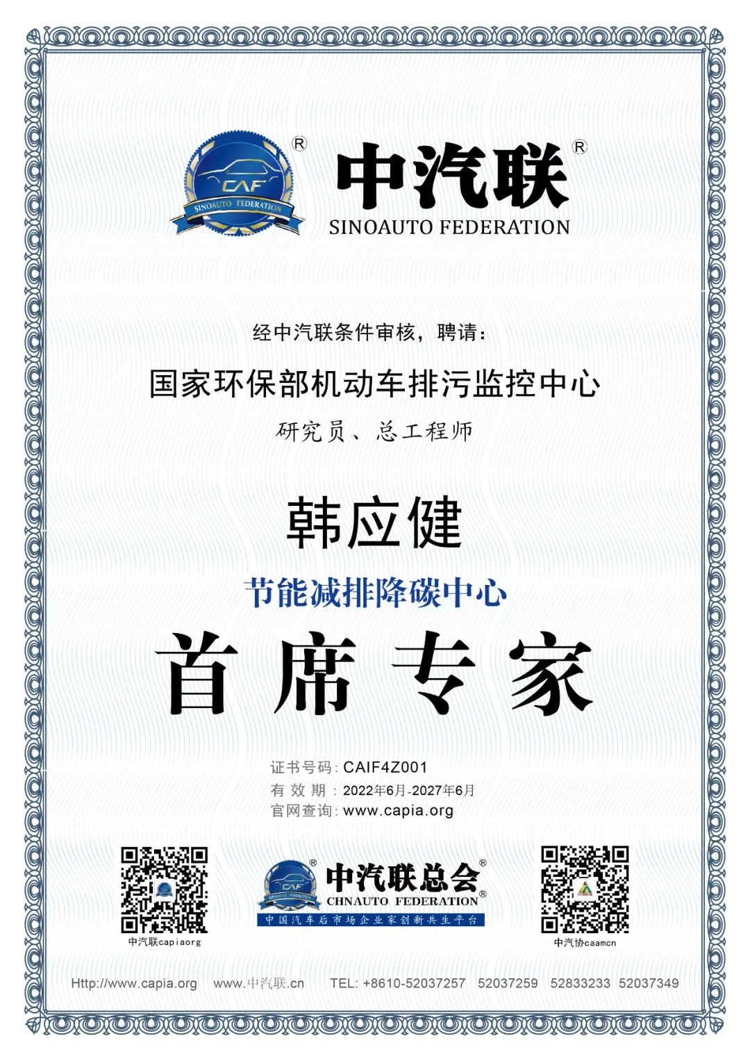 近日,经伟德中文网站理事会推荐,伟德中文网站专家委员会审核,节能减排降碳中心批准,正式聘请国家环境保护部机动车排污监控中心研究员、总工程师韩应健担任“节能减排降碳中心首席专家”。
