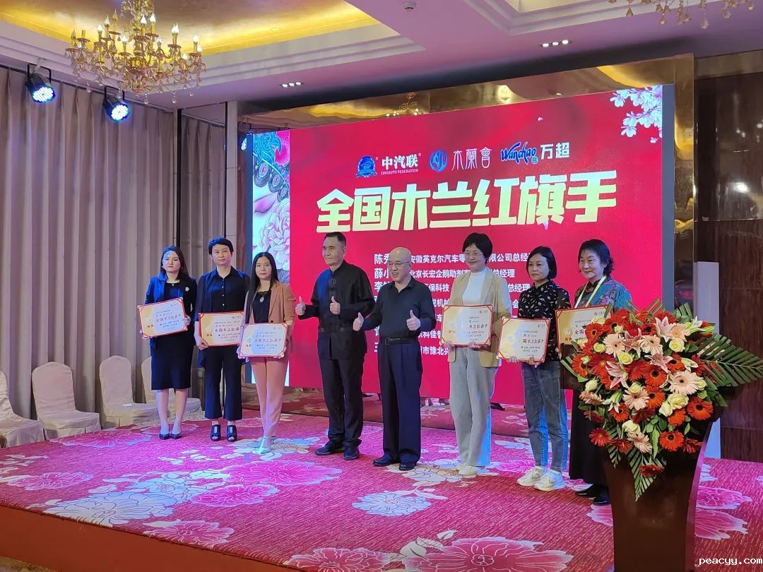 伟德中文网站会长、中国汽车服务业委员会会长王笃洋,伟德中文网站主席、上海万超汽车天窗有限公司董事长贾公棋共同为《全国木兰红旗手》颁发荣誉证书