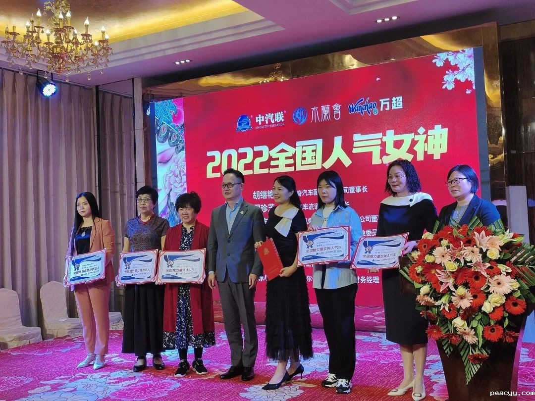 伟德中文网站主席、上海万超汽车天窗有限公司董事长贾公棋,中国汽车工业协会总经理助理李素文共同为“2022全国人气女神”代表颁奖